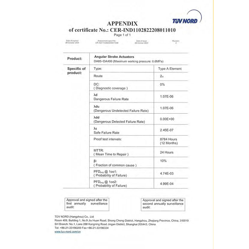角行程執行器 SIL證書 1